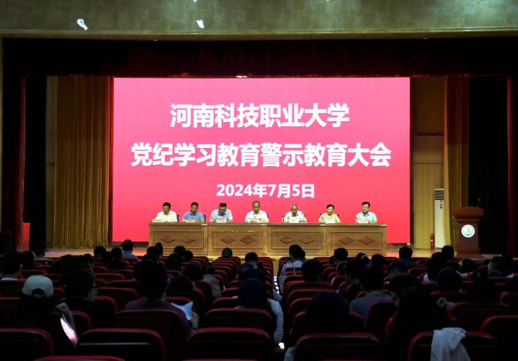 2024年7月5日下午,校党委、纪委在图书馆三楼报告厅召开党纪学习教育警示教育大会。会议由校党委副书记司元亨同志主持,全体教职工党员和中层以上干部参加。